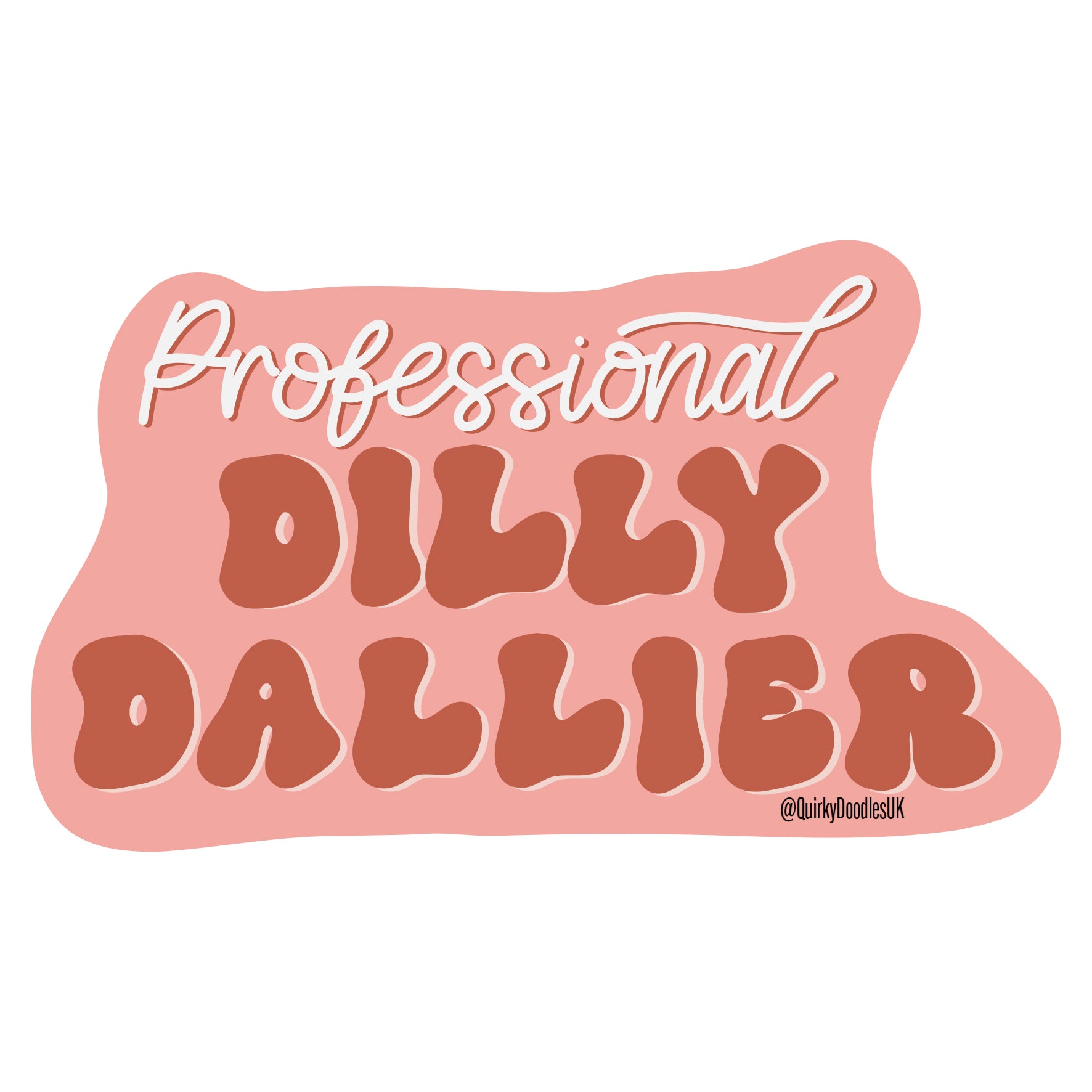 Add a dash of fun to your belongings with the Professional Dilly Dallier sticker. Perfect for those who love to take their time and enjoy the moment, this playful sticker sticks easily on laptops, notebooks, or water bottles, bringing a cheeky smile wherever it goes. Let your laid-back spirit shine with a reminder that sometimes, a little dawdling is just part of the professional charm!